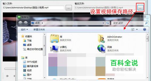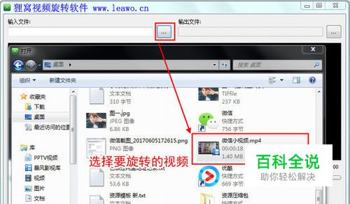 接着在输出文件中点击“...”设置视频旋转后要保存的路径,最好保存在桌面方便查找,在另存为窗口中文件名处给视频输入名称,最后点击保存。