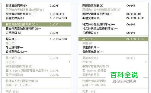 说明:iTunes是个媒体管理器,在下面进行相应的同步过程中,媒体要事先加入到iTunes里面去。加入的方法是在文件菜单选择“将文件添加到资料库”或者“导入”,如下图所示:
