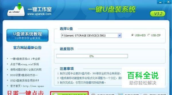 核心提示:想要重转系统?但是没有系统盘,怎么办?这篇教程就是来教大家怎么用u盘来装系统。 简单流程:【支持XP/WIN7/VISTA系统】 下载一键立即制作成U盘启动盘----放入系统文件----重启设置U盘第一启动----PE中立即直接还原----系统还原成功! 第一步:制作前准备及注意事项 第二步:安装一键U盘装系统软件制作启动盘 第三步:系统文件下载及放入 第四步:重启进入BIOS设置 第五步:进入U盘系统启动菜单界面 第六步:进入WindowsPE在开始恢复系统 第一步:制作前准备及注意事项 1.下载一键U盘装系统软件:立即下载一键U盘装系统工具(注意:电脑内存不能小于512MB;U盘的容量不能小于256MB;) 2.下载GHOST系统到你的硬盘中(注意不是下载到U盘里) 第二步:安装一键U盘装系统软件制作启动盘 安装完成后,双击打开一键软件,画面如下图,插入移动存储设备,点击“一键制作usb启动盘”按钮后便开始为你制作启动盘 (注意 操作前备份U盘重要数据) 注意:由于U盘系统文件隐藏,你会发现u盘空间没多大变化。请不要担心此时没有制作成功 点击查看“是否制作成功”的办法 第三步:系统文件下载及放入 将刚刚下载的GHOSTxp或者win7系统,复制到你的U盘中; 如果没有下载,请下载系统后安装 第四步:重启,设置USB为第一启动盘(提示:请先插入U盘后,开机设置启动项) 常见的两种设置方法: 第一种:开机直接启动热键进入U盘系统,速查表:电脑Bois中usb模式启动热键 第二种:开机设置BIOS后,进入U盘系统,速查表:U盘装系统中bios怎么设置USB启动 如下图为BIOS界面: 第五步:进入U盘系统启动菜单界面 系统恢复用两种办法,第一种是在PE中恢复系统,第二种是不进直接还原的C盘(使用方法:用一键U盘装系统工具不进PE恢复系统的方法) 今天我们使用第一种方法进入PE恢复系统:如下图所示:运行winpe PE启动中,启动过程中会出现下面的界面,由于电脑的型号有所不同,可能会需要1-3分钟等待,请勿着急 如果你的笔记本电脑在启动PE时出现蓝屏,请查看硬盘为什么工作模式,如果为AHCI模式,可以调成IDE模式即可。调换后可再一次尝试进入PE。 第六步:进入WindowsPE中开始恢复系统 如果你是新电脑或新硬盘,需要分区后才能装系统,(查看分区的办法)如果不是可以打开ONEKEY(一键还原)进行恢复系统 选择你要恢复的系统文件,选择完后点击确定,如下图 确定是否恢复系统,下图所示:选择是 注意:如果用onekey找不到或者打不开你的系统文件,那么请将你的系统文件解压,然后再试一下,切记系统文件命名不要使用中文命名,不要存放在中文文件夹内 系统恢复中,下图所示: 等恢复完成后重启计算机,将进入系统自动重装过程,只需等待即可。 至此,用一键u盘安装操作系统完毕!你可以忘掉没有光驱无法安装操作系统的烦恼了。值得一提的是,由于整个过程都是在硬盘里读取数据,所以在安装速度上比用光盘安装快很多。 1、制作一键U盘启动盘之前请备份好U盘上有用的数据。 2、有NTFS分区的硬盘或多硬盘的系统,在DOS下硬盘的盘符排列和在Windows中的顺序可能不一样,请大家自行查找确定,以免误操作。 3、U盘启动盘出现问题主要原因: ①主板不支持U盘启动(或支持的不完善); ②某些DOS软件(尤其是对磁盘操作类的)对U盘支持的可能不是很好; ③U盘是DOS之后出现的新硬件,种类比较繁杂,而且目前绝大多数的USB设备都没有DOS下的驱动,目前使用的基本都是兼容驱动,所以出现一些问题也在所难免; ④U盘本身质量有问题; ⑤经常对U盘有不正确的操作,比如2000、XP、2003下直接插拔U盘,而不是通过《安全删除硬件》来卸载。 4、有些主板(尤其是老主板)的BIOS中不支持U盘启动,所以会找不到相应的选项。如果有此问题,只能是刷新BIOS解决,如果刷新BIOS未解决,只能放弃了。
