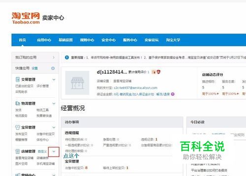 打开淘宝卖家中心,点击店铺管理的下拉按钮