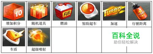增加积分道具:可以按比例增加你的积分,你成绩越好,这个道具的作用也就越大。 随机道具:这可是展示你运气的道具了,使用它可以获得随机一件道具的效果。 惊险超车道具:想要你的得分更高么?那这个惊险超车道具或许会帮助到你,只要买了这个道具,会更容易获得惊险超车评价。 行驶距离道具:天天飞车行驶距离的作用从名字上就可以解释了,很多人都喜欢用这个道具。 超级喷射道具:在游戏中,大家可以购买到超级喷射道具,可进入15秒的超级喷射状态。 燃油道具:燃油顾名思义就是增加你的燃油可以让你跑的更远,对于想刷更多分数的玩家来说,这款道具就必不可少了,增加燃油你才有机会去冲击更高的挑战哦! 加速道具:天天飞车加速就不用多介绍作用了吧,增加赛车的速度这种道具对你们来说,肯定是非常有需要的。 车重道具:车重是一个能增加车辆重量的道具,车子越重,碰撞后的损失就越小,所以这款道具适合那些新手玩家,因为每次的碰撞再重新启动,这就浪费了很多的时间呢。