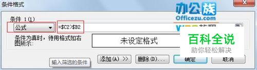 我以上图为例,选中单元格A2:C11,点击菜单栏--格式--条件格式,在弹出的对话框中左边选择公式,右边填写=$C2>$B2 。
