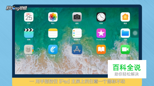 用手指按住iPad主屏上任意一个图标不动,直到图标抖动。