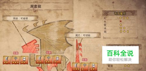 尸套龙主要弱火和龙属性的武器,建议用灭尽龙或火龙武器打。尾巴、胸部、头部肉质最嫩,其中头部和尾巴最容易集中。