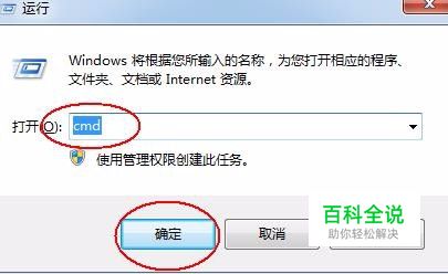 此时电脑不能处于不能上网的状态! 打开电脑菜单:开始——运行——输入CMD——确定