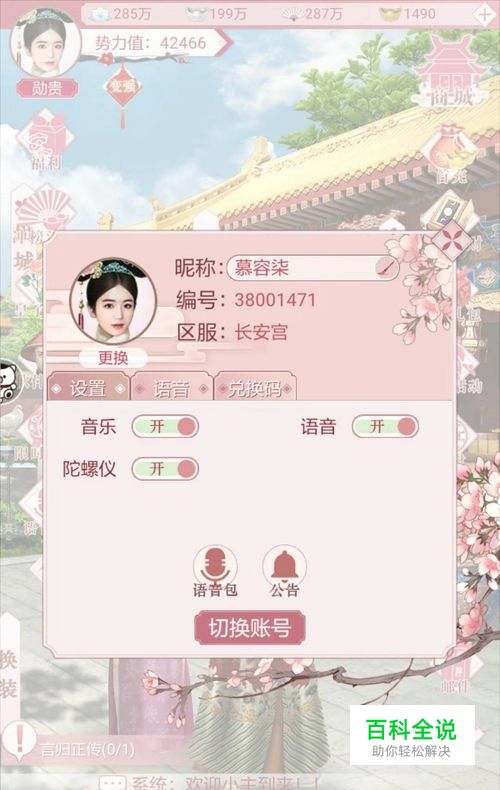 第二步:弹出游戏的设置框,点击下方的“切换账号”。