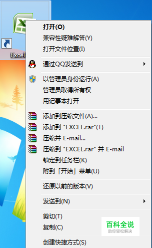 首先使用鼠标右键单击桌面上的Exel2007图标,打开属性菜单