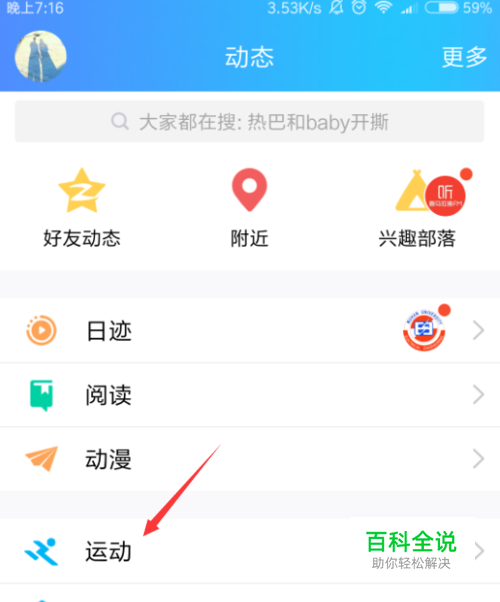 在动态页面,我们点击选择运动