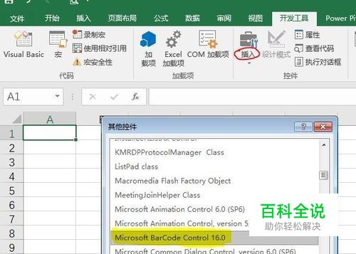 在“其他控件”对话框中,选择“Microsoft BarCode Control”,确定;