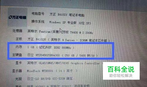 首先在网上搜一下自己的电脑主板内存可以扩展到多大,硬盘接口等。新内存条的购买要看自己电脑原内存条的型号,这个可以下载鲁大师,在硬件检测里检测一下,看到电脑的详细配置,购买一定要购买与原内存条型号一致的(品牌不限),按照查找的相应笔记本扩容内存再购买,我的本子是方正R410IU的老本子,原来内存1G我加了一个2G 的,这时看到内存的型号是DDR2 800MHZ,一定要购买一样的。硬盘接口基本上通用,不用担心,购买128G容量足够了。