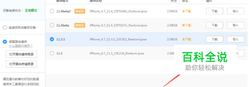在刷机界面,我们可以看到当前可以使用的系统版本号,有11.4,11.3.1,11.3等,我们需要回退到ios 11.3,如下