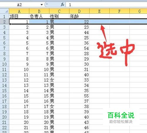 选中首行的下一行,也就是表格的第二行。
