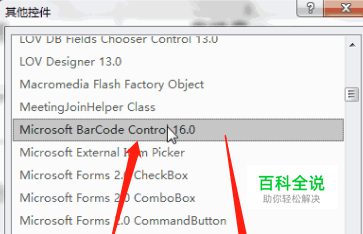 在【其他控件】对话框里,选择【Microsoft Barcode Control 16.0】,单击【确定】。如下图示。