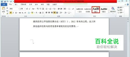 将文档中以“一”、“二”……开头的段落设为”标题1“样式; 将文档中以“㈠”、“㈡”……开头的段落设为”标题1“样式; 将文档中以“1”、“2”……开头的段落设为”标题1“样式。