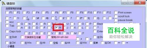 这个软件可以锁定你想锁定的任何一个或几个,总之,想锁哪个锁哪个,比较人性化。比如勾选“H”,则键盘“H”键被锁定,不能用了。