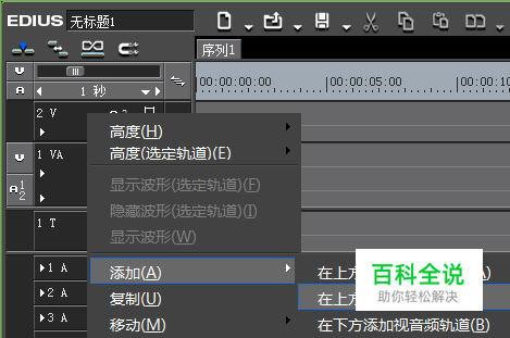 在轨道面板中鼠标右击,选择添加,在上方添加足够多的视频轨道;