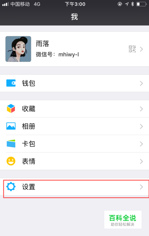从“微信”切换到“我”,最页面的最后一栏是“设置”。