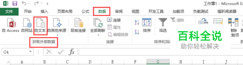 打开excel,选择“数据”选项卡,选择“自文本”。