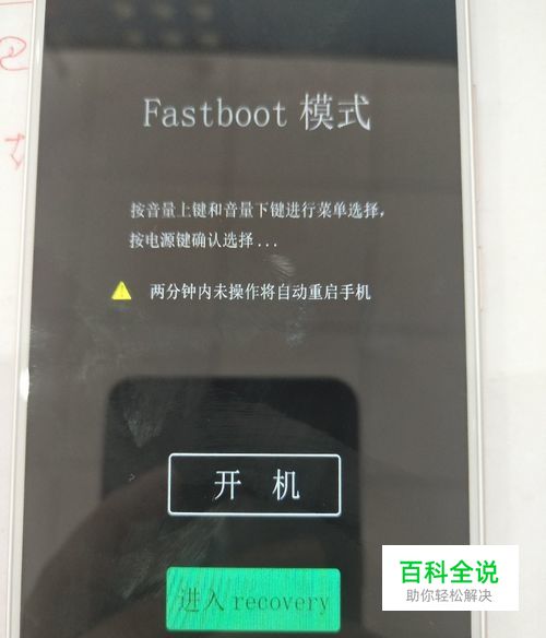 第二步:同时按住音量下键和电源键不放,进入Fastboot模式(如图)