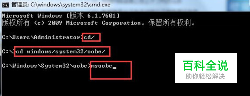 然后输入msoobe或msoobe.exe按回车确认。如下图所示: