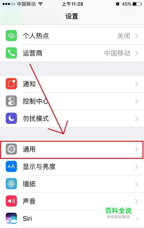 点击页面的“ 设置”图标,进入“设置”页面, 点击“ 通用”一栏。