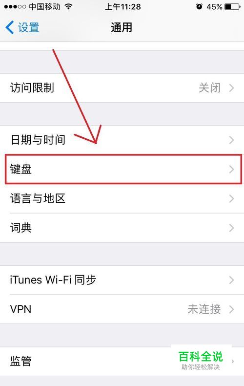 进入“ 通用”页面,点击“ 键盘”一栏。
