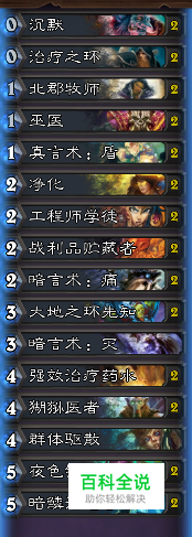 首先先了解BOSS技能,亡语者女士技能死亡低语:把随从生命值降低为1。再了解背景,和WOW一样,这关有龙帮助,我们有条绿龙,30攻击力,但必须生命值全满才可以攻击。因此职业我们选择牧师,卡组我们带加血的。没啥好卡,于是我把所有加血的都带上了。剩下带上了些找牌的1生命随从。然后还带了些驱散和暗言术。切记不要带AOE,这会杀掉我们的绿龙。
