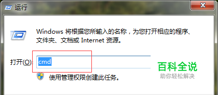 首先,按快捷键“Win+R”打开“运行”窗口,在输入框中输入:cmd,再点击“确定”按钮
