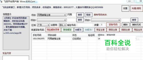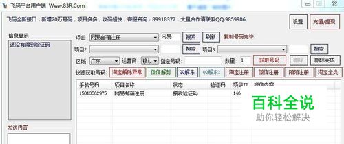 打开飞码客户端,在客户端输入“网易”然后点击搜索,点击下拉框选择“网易邮箱注册”项目,再点击“获取号码”,客户端即获取一个手机号码。