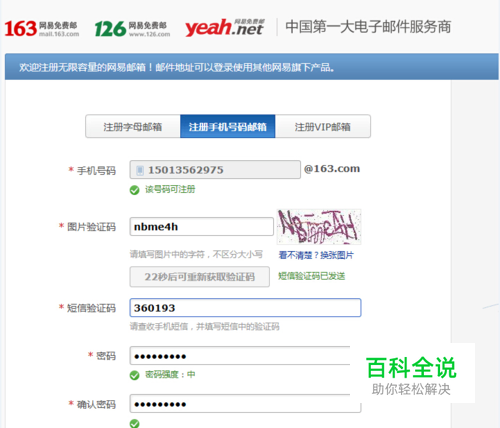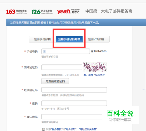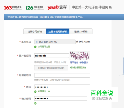 到网易邮箱注册页面,填入客户端获取到的手机号码,输入“图片验证码”,然后点击“免费获取验证码”,接着设置登录时的密码并确认密码。然后点击“立即注册”