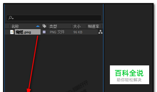 比如,我们现在导入一张图片; 把素材拖到如下图所示的图标(新建合成的图标)