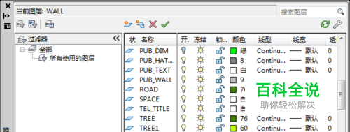 点击【图层】选项,进入图层窗口,在该窗口下可以看到该图纸里创建的所有图层,如下图所示。