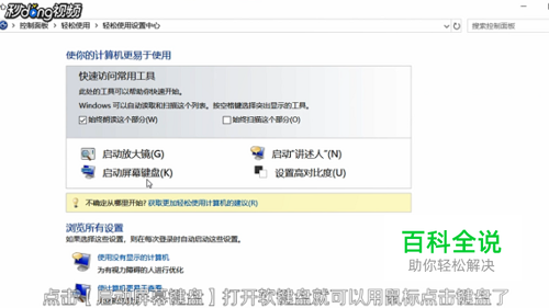 点击“启动屏幕键盘”就可以用鼠标点击键盘了,切换输入法的话多个按钮按顺序点击即可