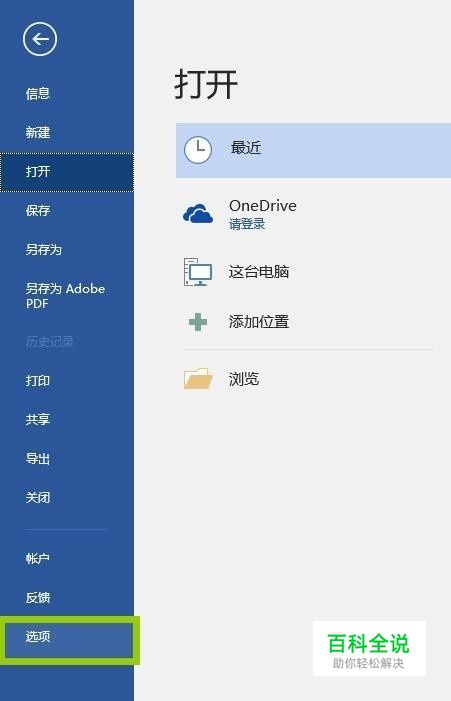 点开文件后,点击“选项“。