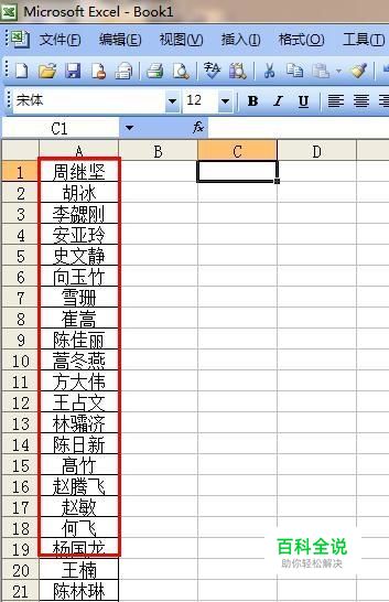 鼠标随便点击其他的单元格,是的C1单元格不再处于选中状态,你会看到这些字母会变成名字,如下图所示的样子。