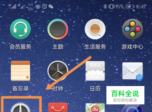 打开华为手机,找到手机中的“设置”选项,点击并进入手机的设置选项。