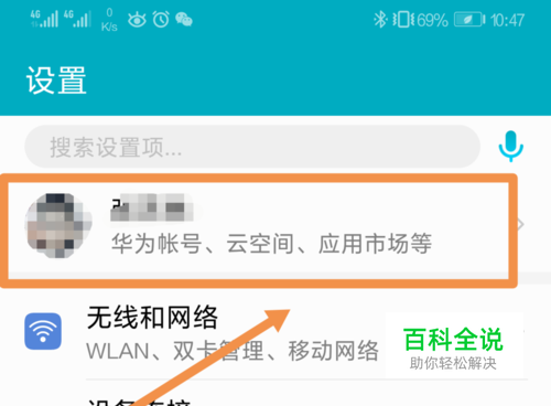 进入设置后,在最顶部会看到个人的华为账号信息,如果EMUI版本比较低,可能显示在其他位置,找到后点击进入。