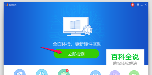 第二步:检测电脑硬件。 启动驱动精灵,点击:立即检测;
