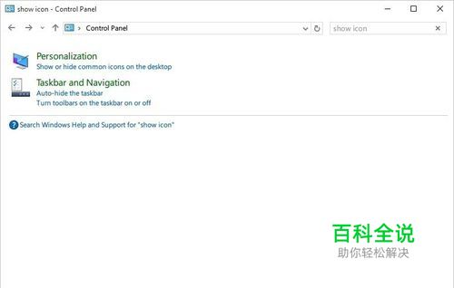 原因:因为Windows 10的个性化菜单会自动跳转到Metro UI对应的界面而不显示旧的,暂时找不到新界面的上显示隐藏按钮。