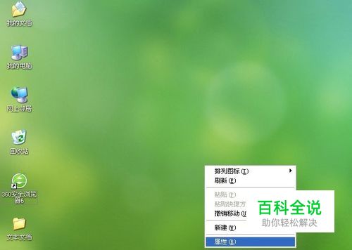 把鼠标放在桌面,点击鼠标右键,选择“属性”。如图: