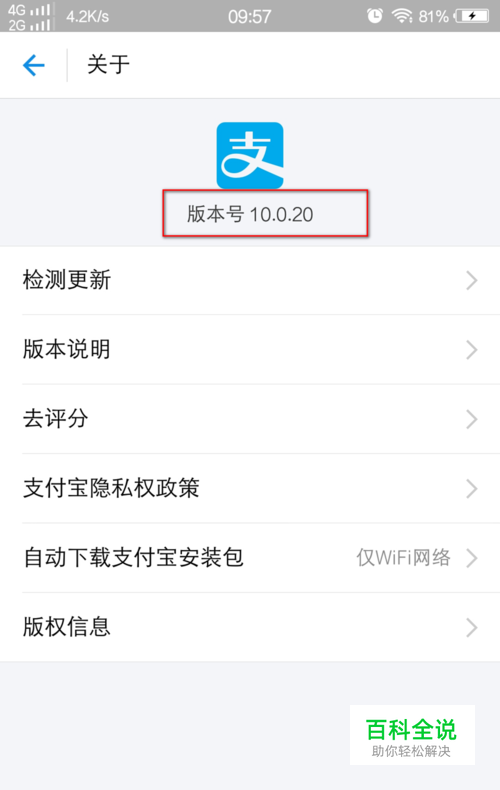 笔者用来做示范的支付宝版本号是10.0.20