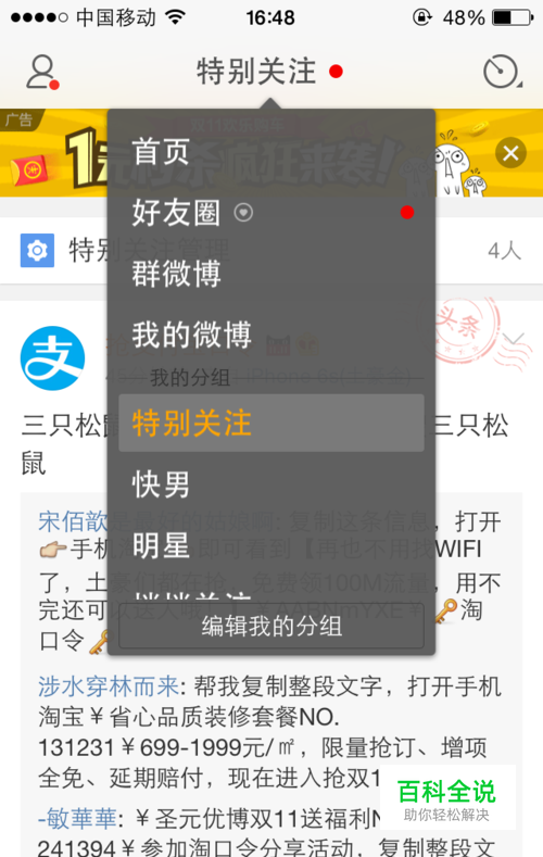 打开特别关注管理看到新微博提醒和新微博消息通知
