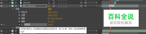 这是我们在透明度左边的闹钟标志上点击下,设置一个关键帧,然后移动下时间轴,修改下透明度。原先是100%,移动时间轴后改成0%