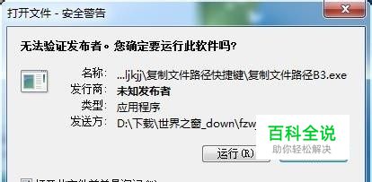 找到该工具,双击打开[复制文件路径B3.exe],在win7系统的保护下,第一次运行可能会提示安全信息,直接确定即可。
