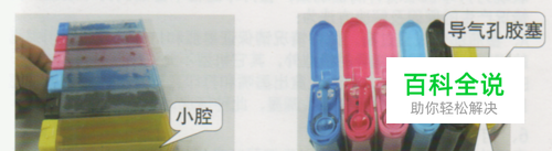 接下来,我们开始动手安装,取出连续供墨系装置,先将墨瓶横放,让墨水流到墨水腔(见图1),然后放正墨水瓶,打开瓶盖,拨掉导气孔胶塞,然后盖上盖子见图(2)。