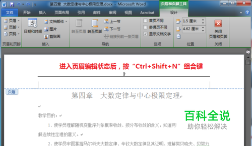 双击有横线的页眉处,进入“页眉和页脚工具”