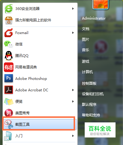 如果是截取网页上的局部区域,首先可以利用电脑自带的截屏工具。以Win7为例,点击“开始”-“截屏工具”;