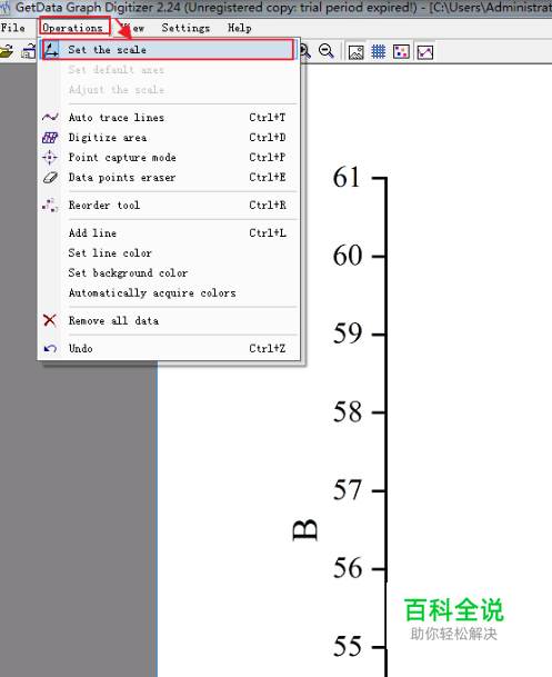 设置背景颜色。执行【Operations】-【set background color】,然后鼠标在图上空白处单击,在弹出的快捷菜单中设置背景颜色(根据图形设置,一般为白色背景(因为图形一般为黑色点)),这将影响到后续取点的准确与否。