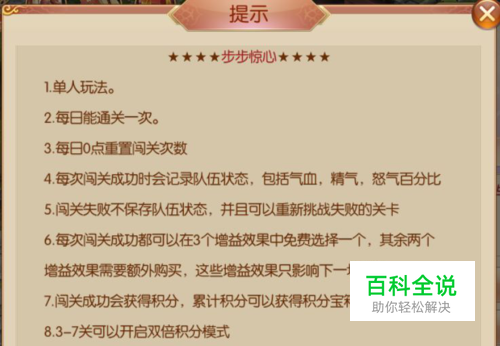 第三关开始玩家可以选择双倍积分挑战对手会获得随机加成(初级,中级,高级)挑战过关后可获得双倍积分值得一提的是,必须完成所有双倍积分挑战才能达到满分30分,开启宝箱喔