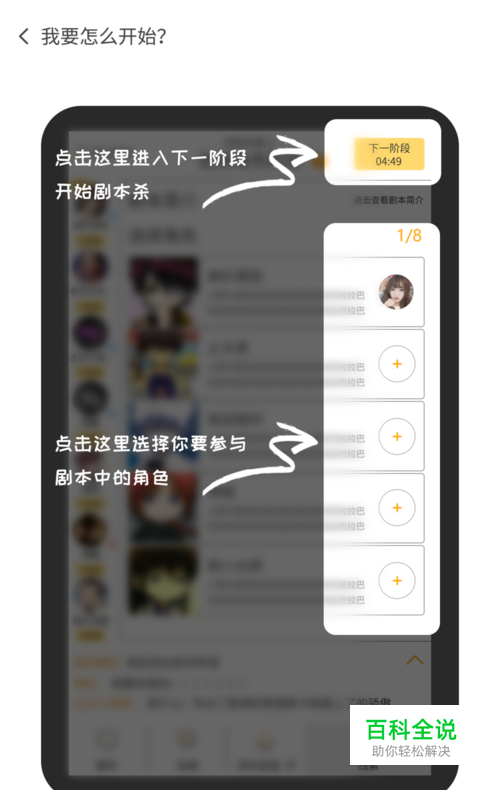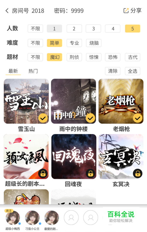 第一步:选择剧本。 在剧本库中,根据游戏人数、题材、难易度等分级,选择将要进行的剧本。也可以通过“快速匹配”界面,随机匹配在线玩家。